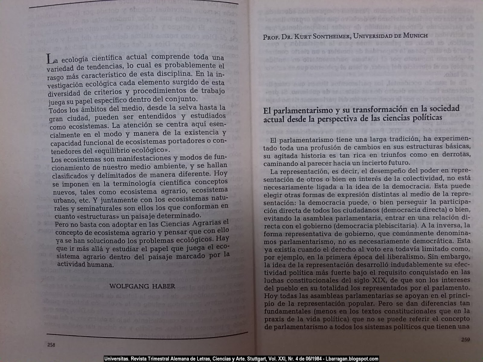 Universitas. Revista Trimestral Alemana de Letras, Ciencias y Arte. Stuttgart, Vol. XXI, Nr. 4 de 06/1984.